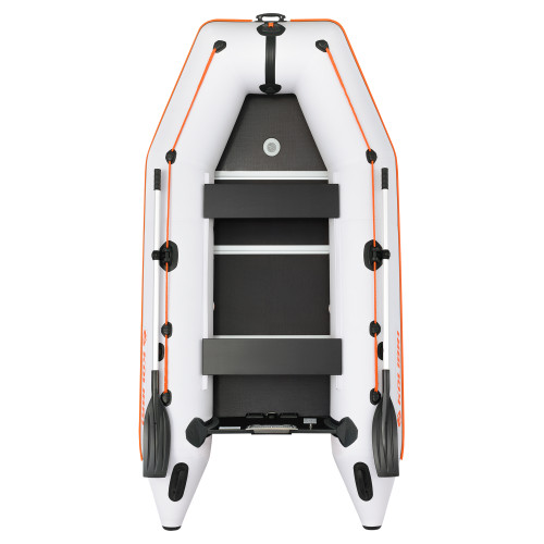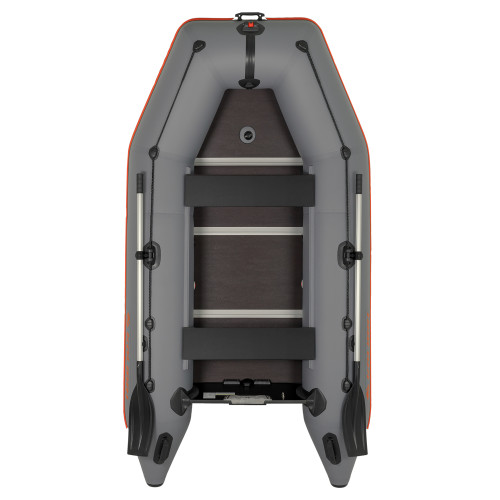 Лодка произведена из особо прочного ПВХ, оснащена надёжным усиленным пайолом, стационарно вмонтированным монолитным транцем, защитой днища по килю и передвижными банками.