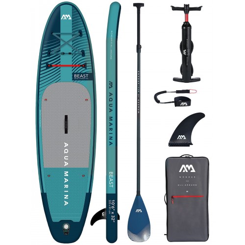 Купить самую популярная современная доска Aqua-Marina модели Beast - это бестселлер, предлагающий фантастическую универсальность и отличающийся непревзойденным качеством, инновациями и дизайном. Beast - это универсальный iSUP, который имеет высоту 10,6 фута, ширину 32 дюйма и толщину 6 дюймов. Эта доска способна приспосабливаться к различным условиям воды, что является основной причиной, по которой многие выбирают надувную SUP в первую очередь.